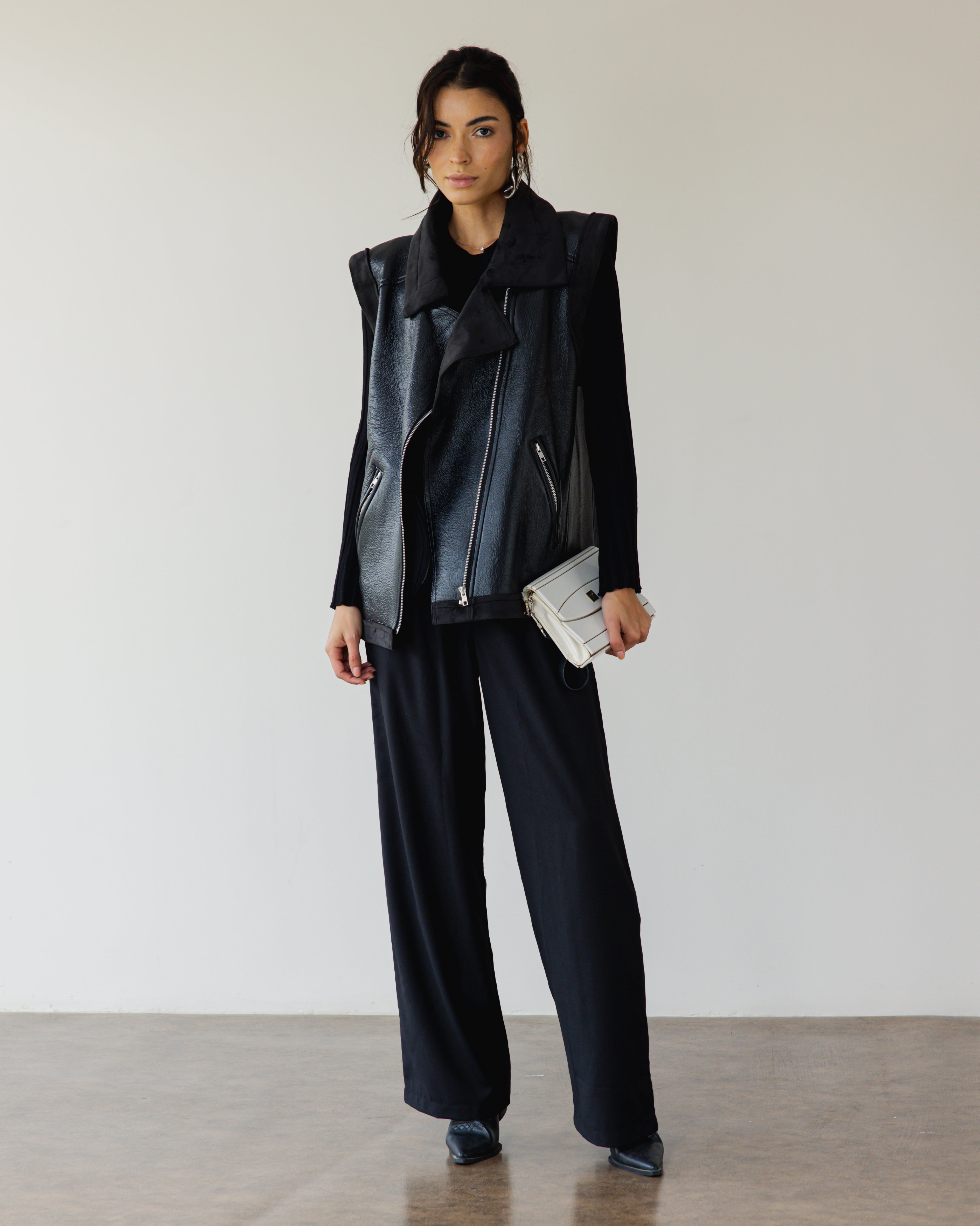 Add a luxe touch to your jackets collection with this so cool leather vests featured in an oversized, sleeveless fit designed to add the perfect layer to any look.