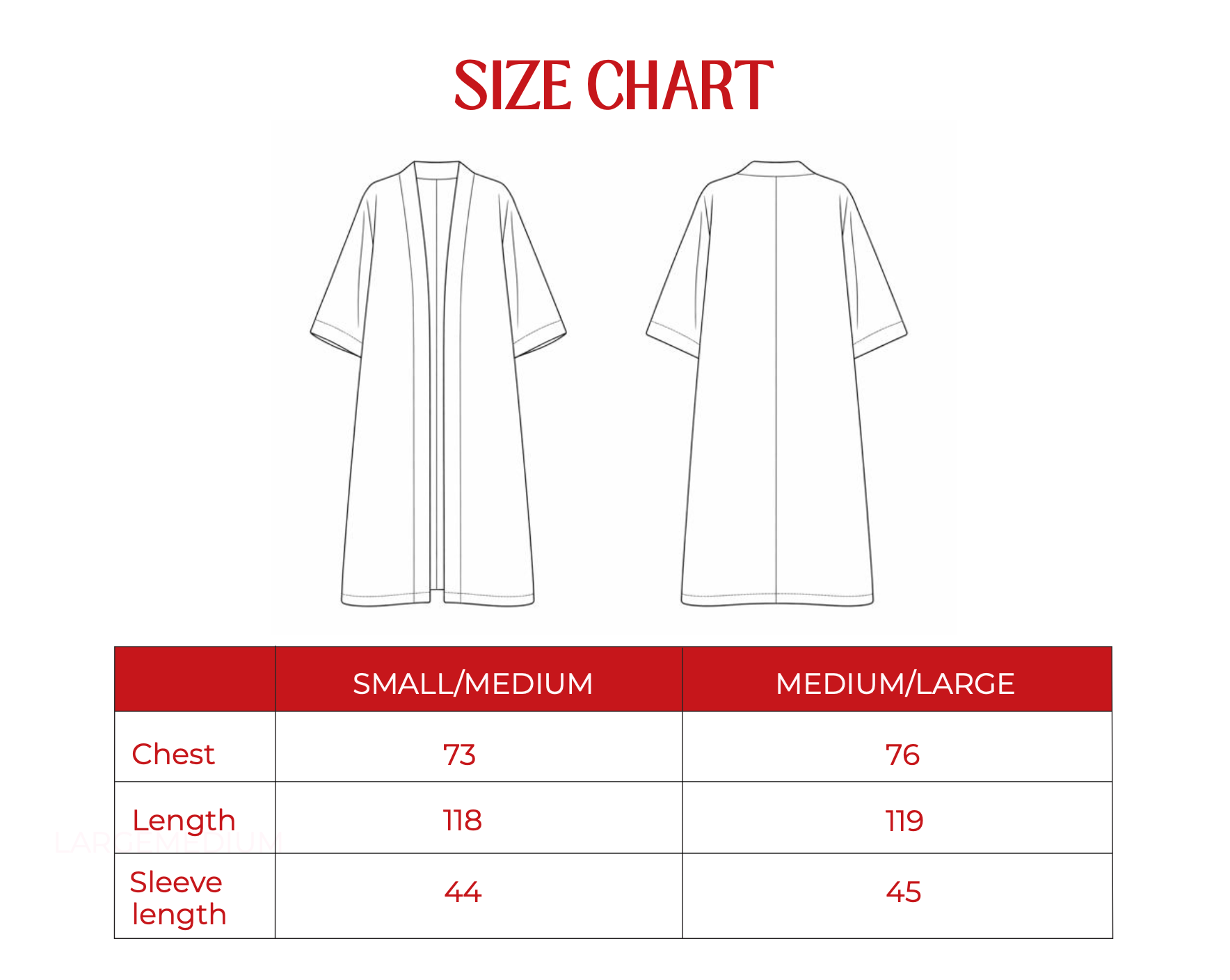 Our size chart lists half measurements of the actual garment.